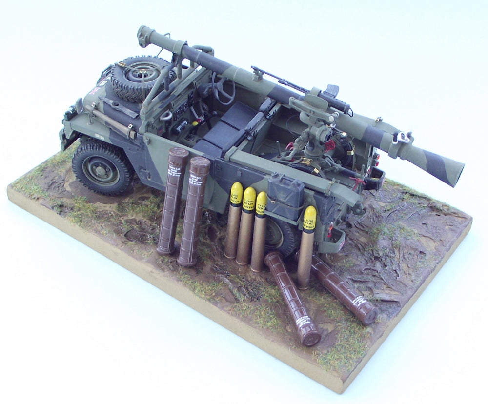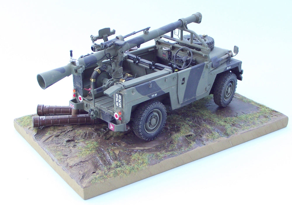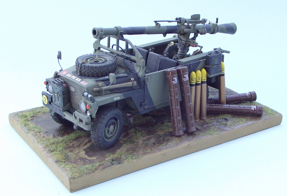 The L6 Wombat 120mm recoilless rifle was 12.66 feet (3.86m) long & required a 3 man crew. Usually, the Wombat was mounted on a small two-wheeled carriage to enable manouvre into a hide position. Contrary to some incorrect reports however, Wombat is not actually a vehicles towed weapon. Although usually fired dismounted from the portee vehicle, it could also be mounted on, & fired from, Army Land Rover vehicles and FV432 APCs suitably converted for the role.