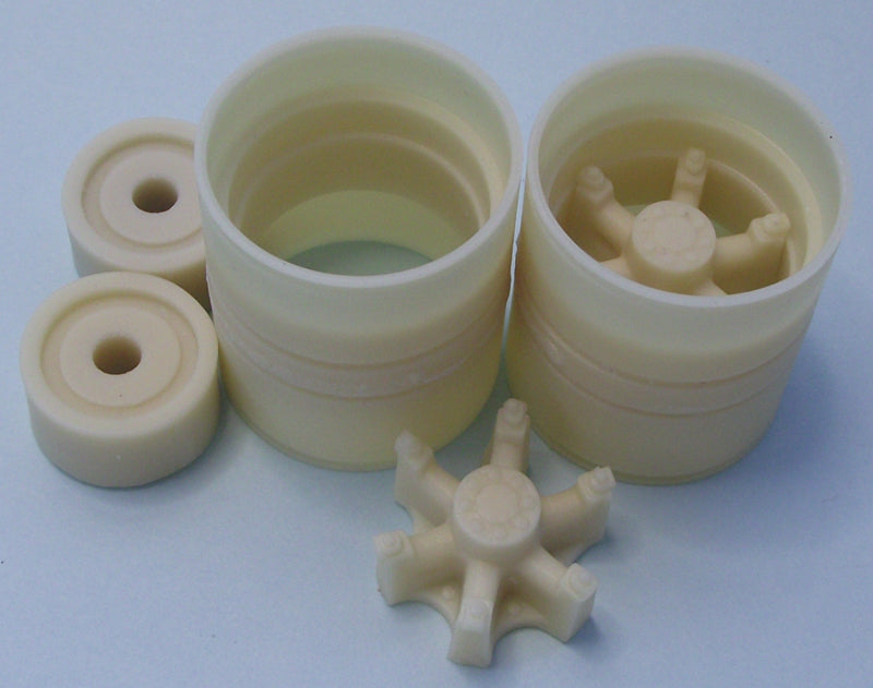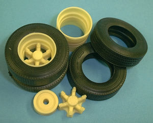 A 6-part, 6 Spoke drive axle set, now with new revised brake drum/hub. Suitable for Italeri standard with truck tyres.