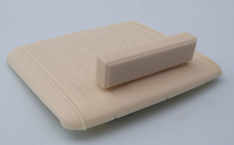 A 1-part traditional British Hatcher style headboard to suit flat cab roof, measuring 12mm tall x 50mm long, shown on left hand side of image. Suitable for Scania 1/2/3 series or F12.