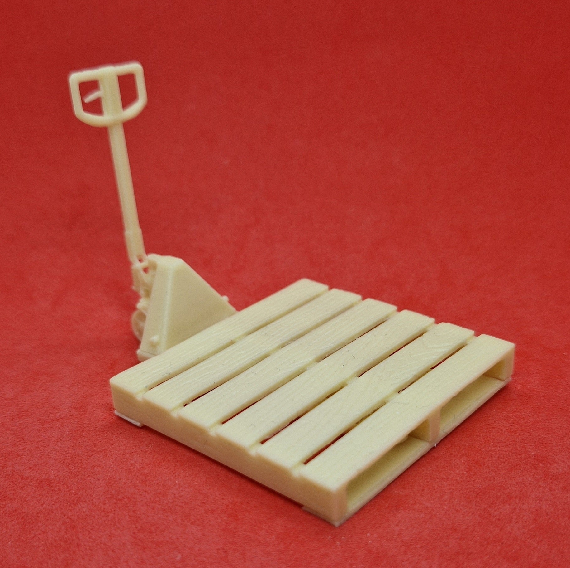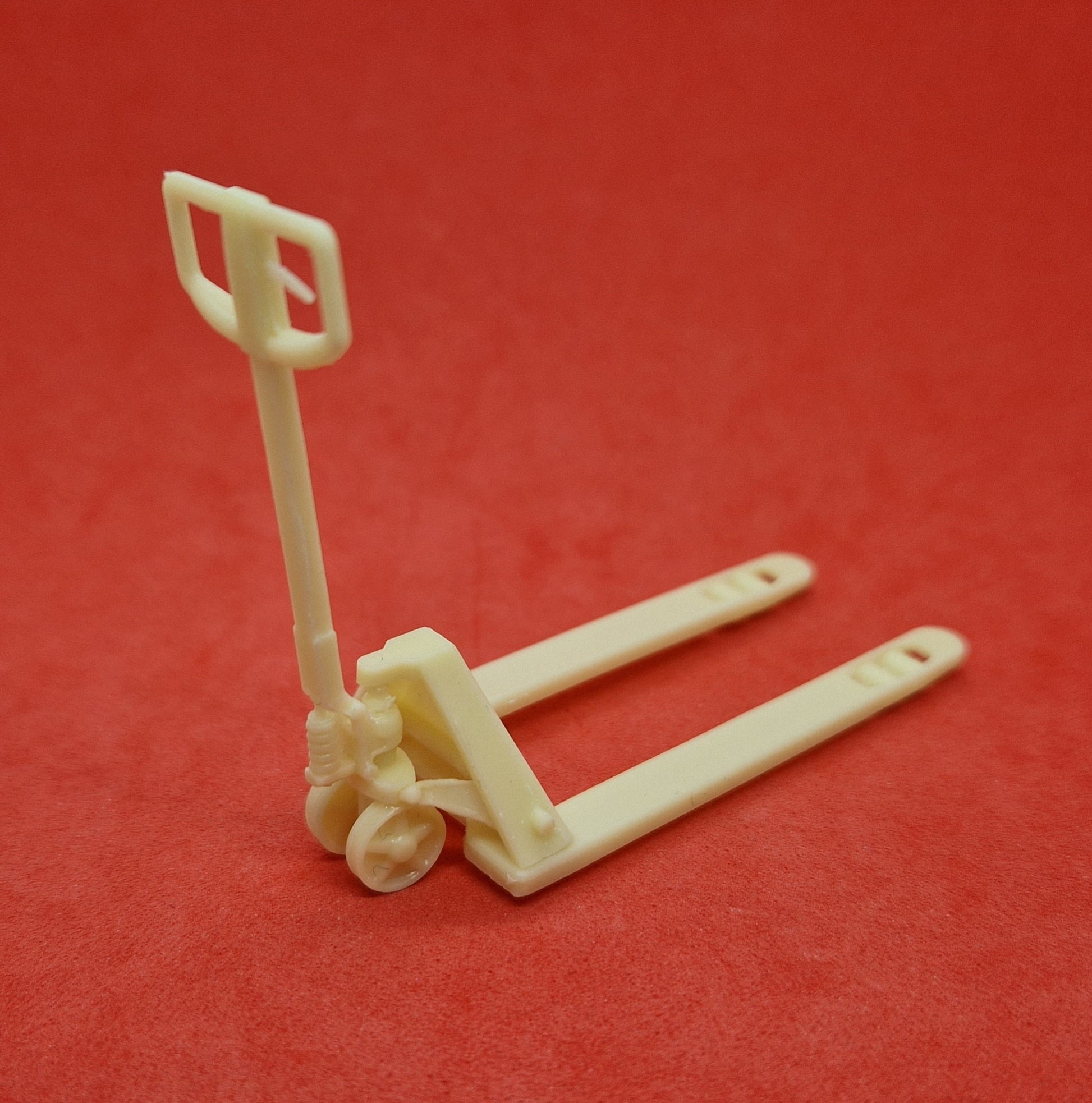A multi-part Resin Pump Truck (Pallet Trolley), suitable for industrial dioramas, including in the rear of any curtain side truck scene, or as a stand alone project. Works well with the KFS Pallets, for a loading scene, for example. (Pallet is not included in this kit and is shown for reference only.)