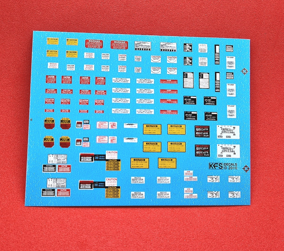 Warning Notices & Vehicle Signs Decals, ideal for cabs and loads. Printed in Red, Yellow, Silver, Black and White, creating over 100 single decal pieces.