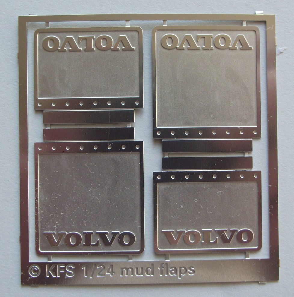 A set of four etched VOLVO mud flaps. Measurements: 24mm wide x 17mm and 24mm deep