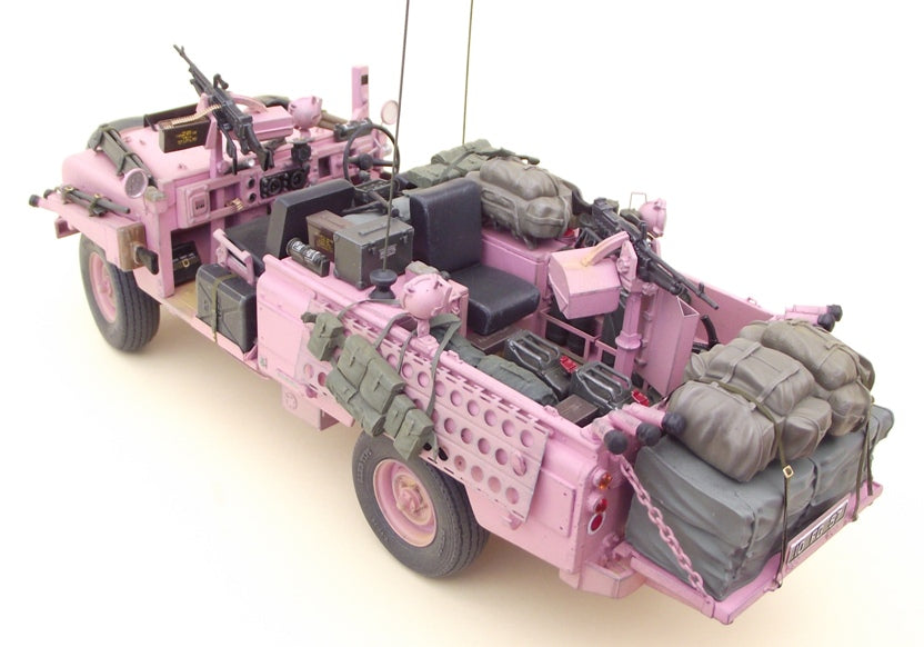 This SAS Pink Panther, 3/4 Ton Truck contains a multitude of finely detailed parts, including weaponry and stowage, making this vehicle a perfect diorama centre piece, or a fabulous stand alone vehicle for display.