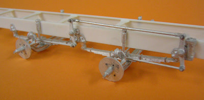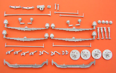 A 41 all metal-part, double steering axle kit with cranked axles. Ideal for use on traditional 8 wheelers. Complete with springs and inter axle steering linkage. (83mm axle centres, 72mm King Pin centres).