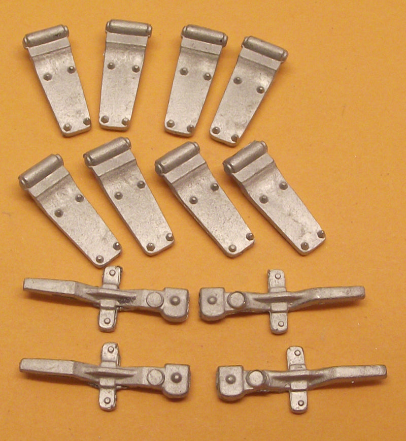 A set of 8 cast metal trailer door hinges plus 4 locking levers.