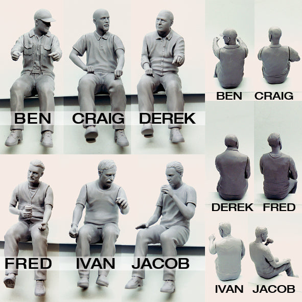 Seated Male Figures - 1/24th Scale (75mm Scale) - KFS-362-370