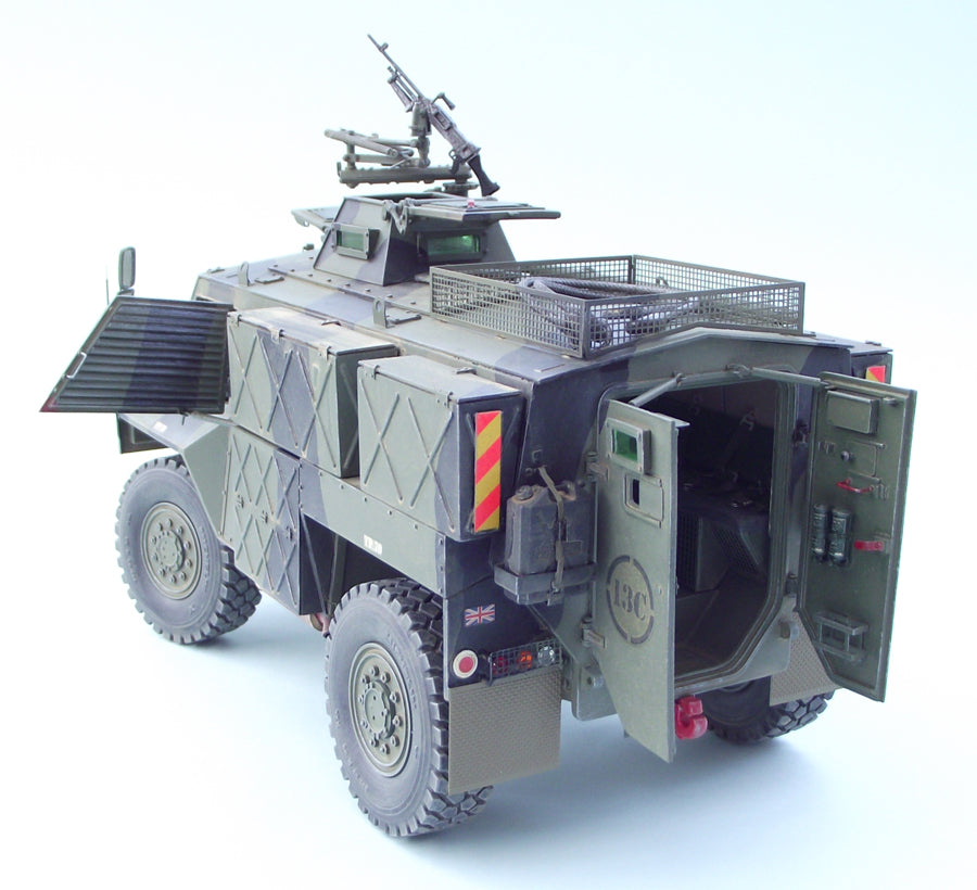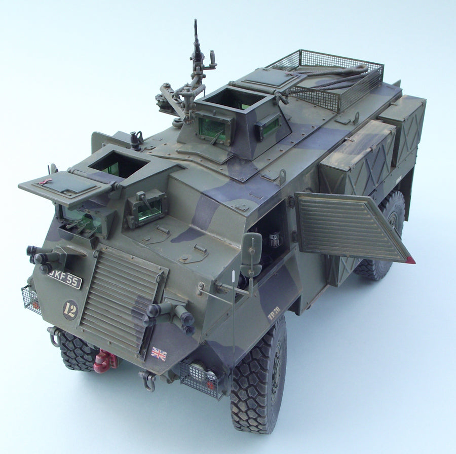 A fully inclusive 1/24th scale model of this 'modern' British APC. Includes fully detailed interior, opening rear and side doors. Opening commanders, drivers & engine bay hatches. Extensive engine bay detail, engine, commanders GPMG mount, etc. Optional steering positions, fully detailed underside, drive line and suspension.